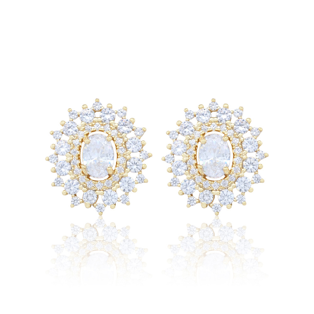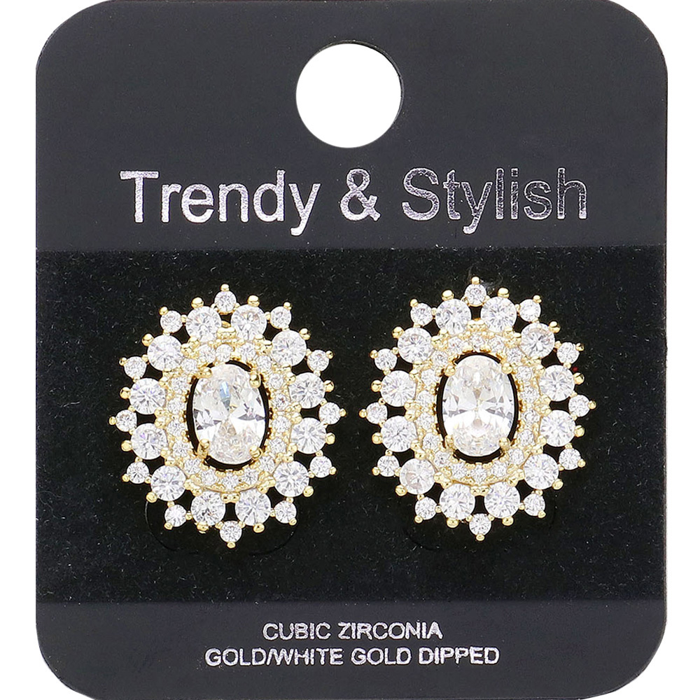 Gold Dipped Oval CZ Stone Pointed Stud Earrings