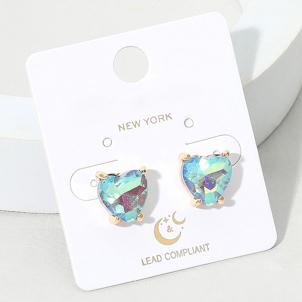 • These faceted heart stud earrings dazzle with radiant shine and a classic prong setting. A charming accessory that adds playful sophistication and timeless romance to your look, day or night.