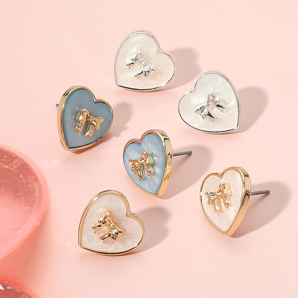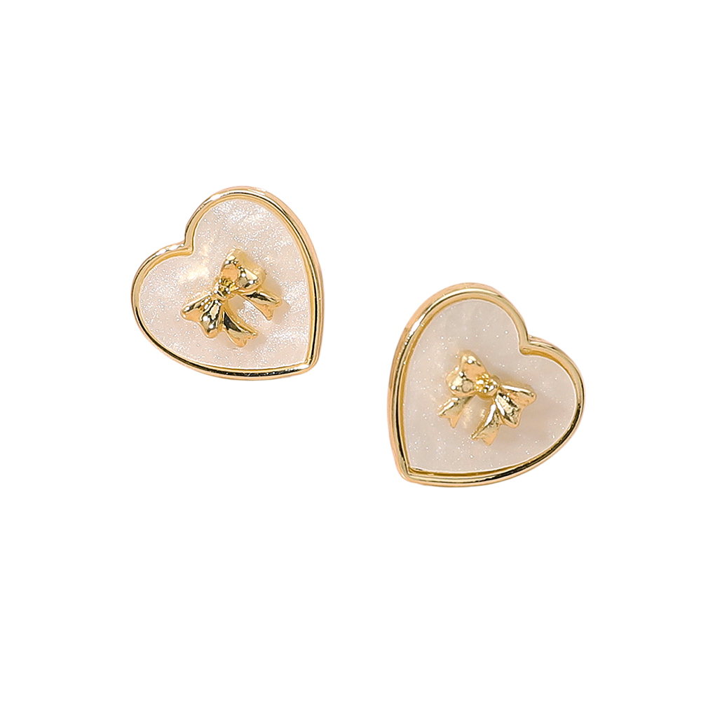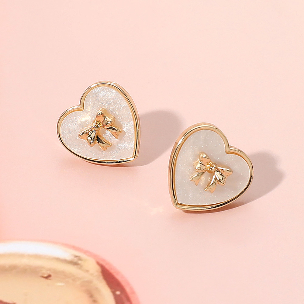 Metal Bow Pointed Pearl Heart Stud Earrings
