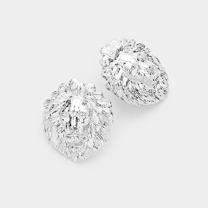 Metal Lion Accented Cutout Triangle Dangle Earrings