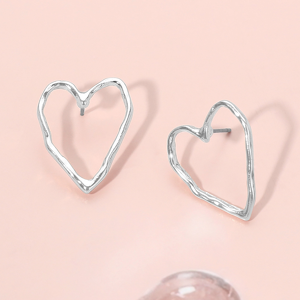 Metal Organic Outline Open Heart Stud Earrings Metal Organic Outline Open Heart Stud Earrings