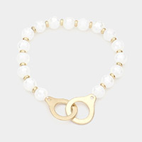 Mother Of Pearl Heart Station Paperclip Metal Chain Layered Bracelet