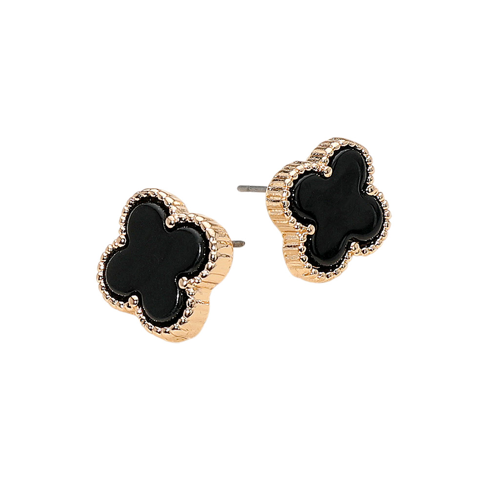 • Stylish stud earrings featuring a quatrefoil shape framed with textured trim for a chic, timeless look. Perfect for elevating everyday outfits or pairing with elegant attire, these earrings offer a touch of sophistication and modern simplicity in one graceful design.