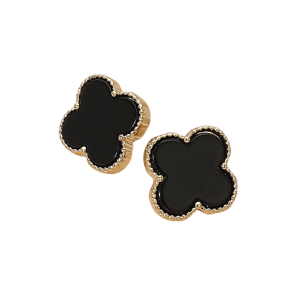 • Stylish quatrefoil stud earrings featuring a smooth, glossy center framed by a detailed beaded outline. A refined, symmetrical shape adds a touch of sophistication to everyday outfits. Lightweight, versatile, and perfect for gifting or enhancing any jewelry collection.