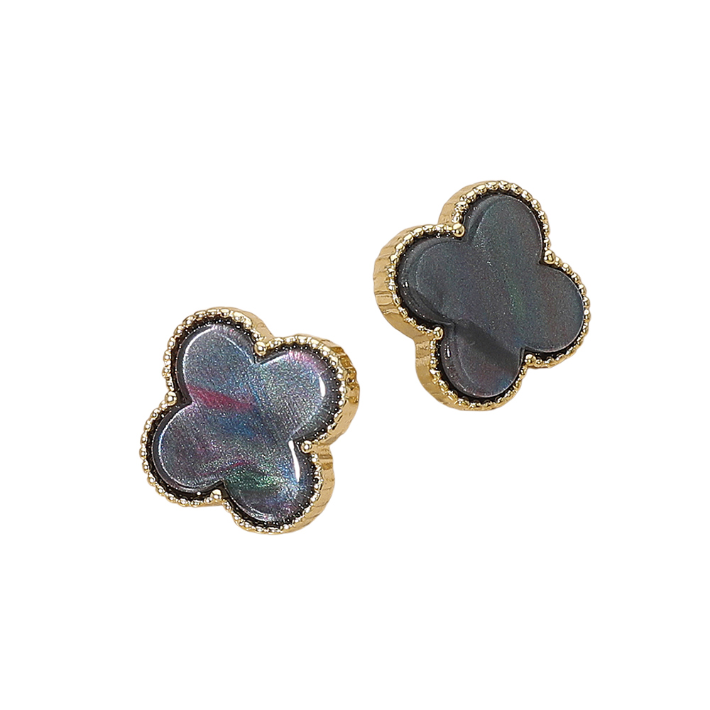 • Stylish quatrefoil stud earrings featuring a smooth, glossy center framed by a detailed beaded outline. A refined, symmetrical shape adds a touch of sophistication to everyday outfits. Lightweight, versatile, and perfect for gifting or enhancing any jewelry collection.