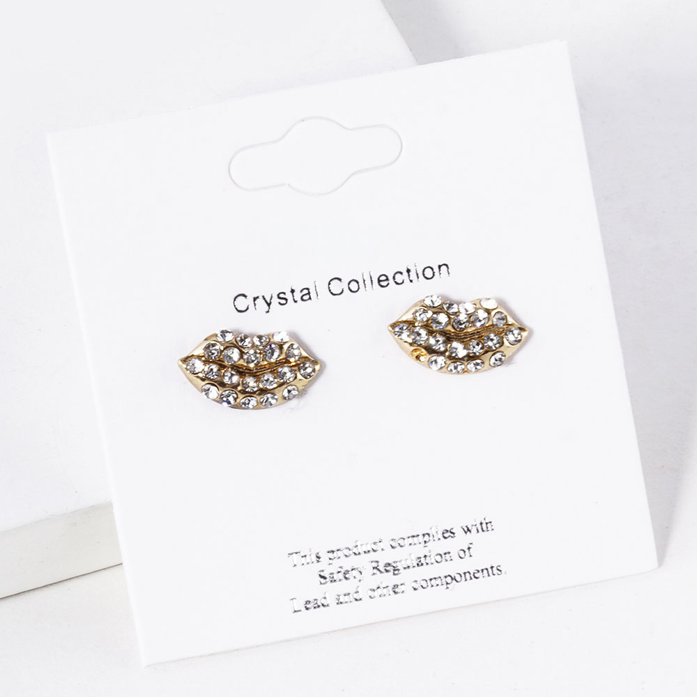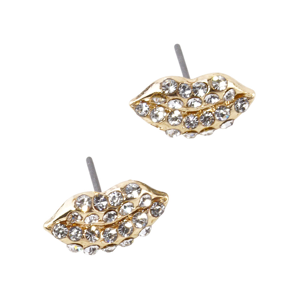 • Chic lip-shaped stud earrings accented with sparkling crystal pave detailing. A playful yet stylish accessory that adds personality to any look, perfect for everyday wear or gifting. Lightweight and easy to pair with casual or dressy outfits.
