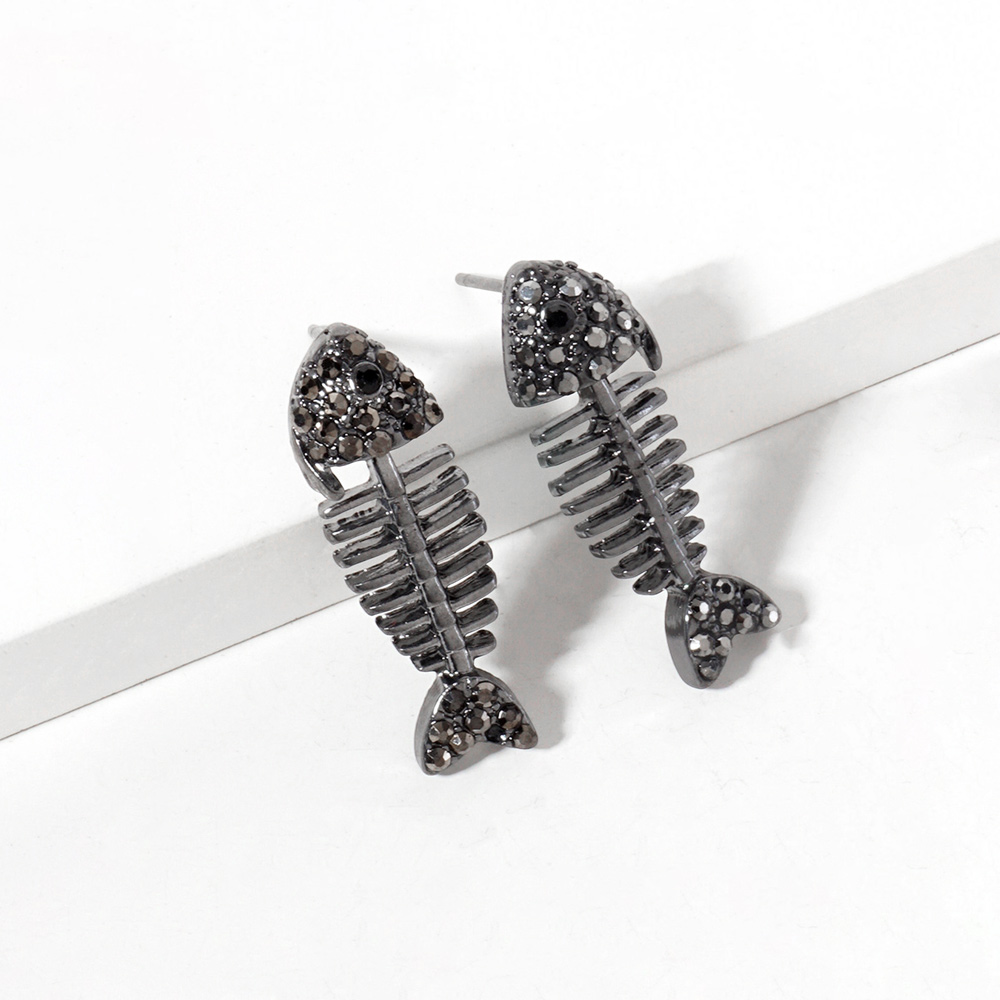 • Unique fishbone drop earrings accented with shimmering details for a playful yet edgy look. Perfect for adding personality to casual outfits, themed events or standout fashion moments. A fun statement accessory with bold, eye-catching charm.