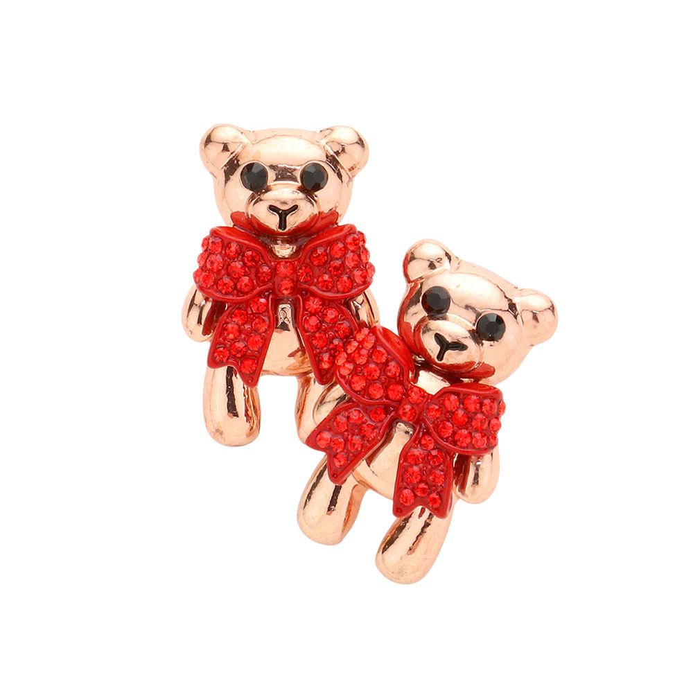 Details • Size : 0.5" X 1" • Post Back • Adorable teddy bear earrings accented with sparkling bows bring a playful yet stylish touch to your look. Perfect for festive occasions, casual outings, or gifting, these cute bear-shaped studs add charm and fun personality to any outfit, making them a delightful accessory choice. • Lead and Nickel Compliant