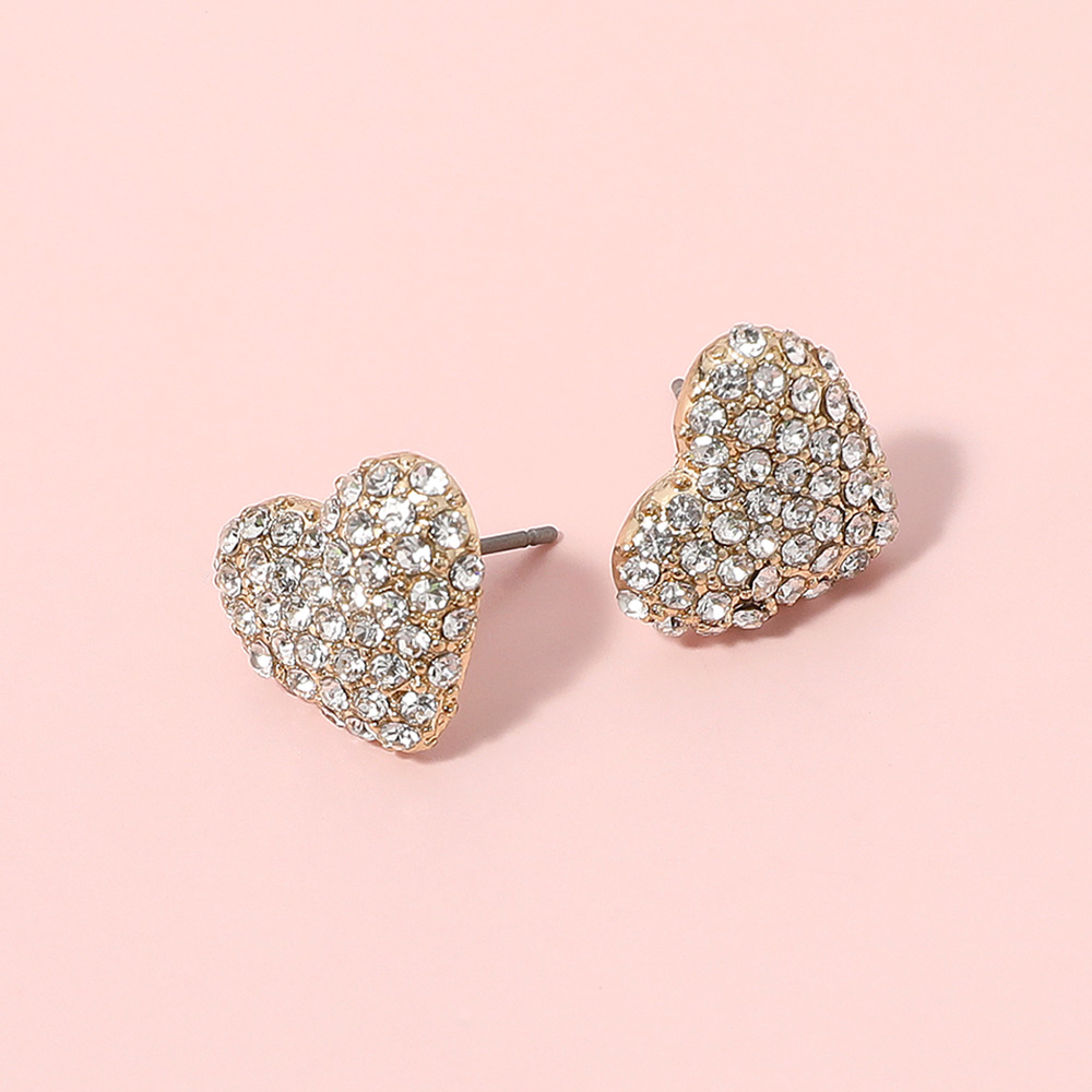 Details • Size : 0.6" X 0.6" • Post Back • Delicate heart stud earrings adorned with sparkling crystal accents, perfect for adding a touch of shimmer to everyday looks. These chic earrings offer a timeless and romantic style, ideal for gifting or wearing as a subtle statement piece. • Lead and Nickel Compliant