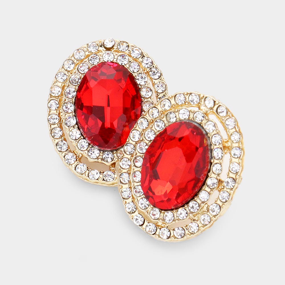 Rhinestone Trim Oval Stone Stud Evening Earrings