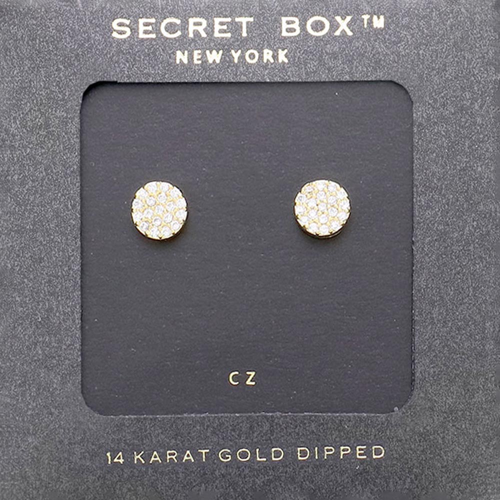 Secret Box _ 14K Gold Dipped CZ Round Stud Earrings