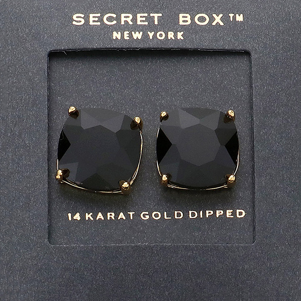 SECRET BOX_14K Gold Dipped Rhinestone Stud Earrings