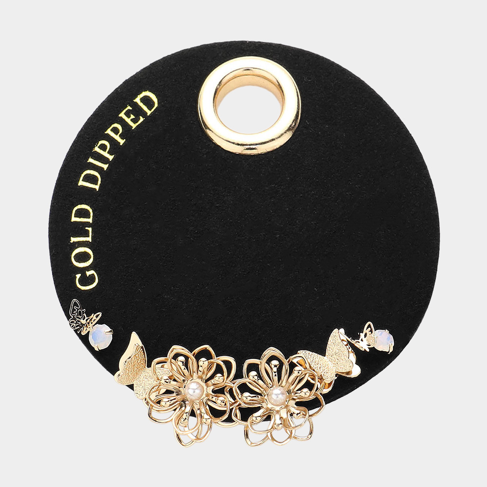 Details • Size : 0.25" L - 0.6" L • Post Back • Delicate stud earrings featuring intricate floral and butterfly accents with shimmering details, gold dipped for added elegance. Perfect for adding a whimsical yet sophisticated charm to everyday wear or special occasions. • Gold Dipped