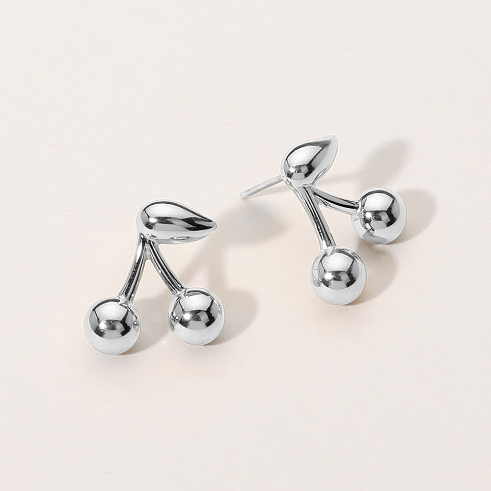 Details • Size : 0.6" X 0.6" • Post Back • Simple and chic cherry stud earrings crafted from stainless steel. A playful yet modern accessory perfect for adding a subtle touch of whimsy to any outfit or everyday look. • Stainless Steel