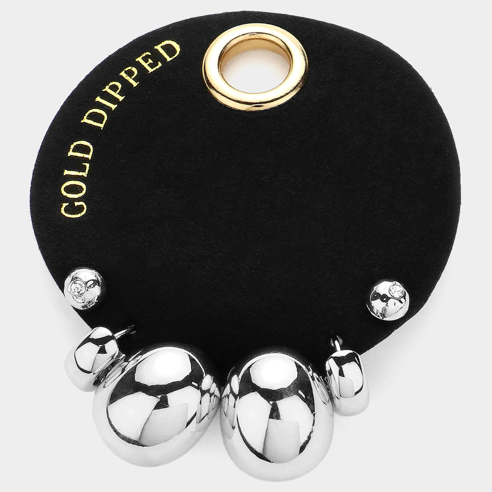 • A stylish three-pair hoop earring set featuring sleek mini hoops and bold rounded drop accents for a polished contemporary vibe. Perfect for mixing, matching, and layering, this versatile set adds effortless shine to everyday outfits or dressy ensembles.