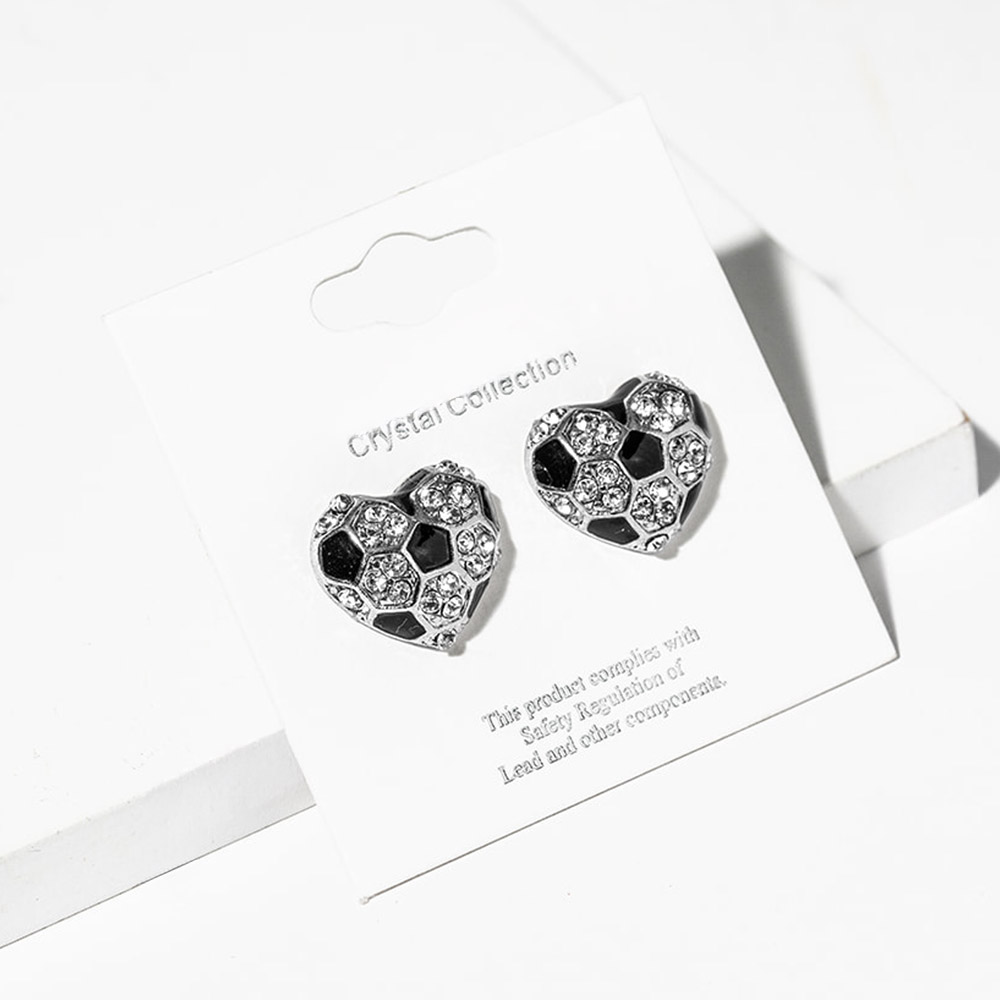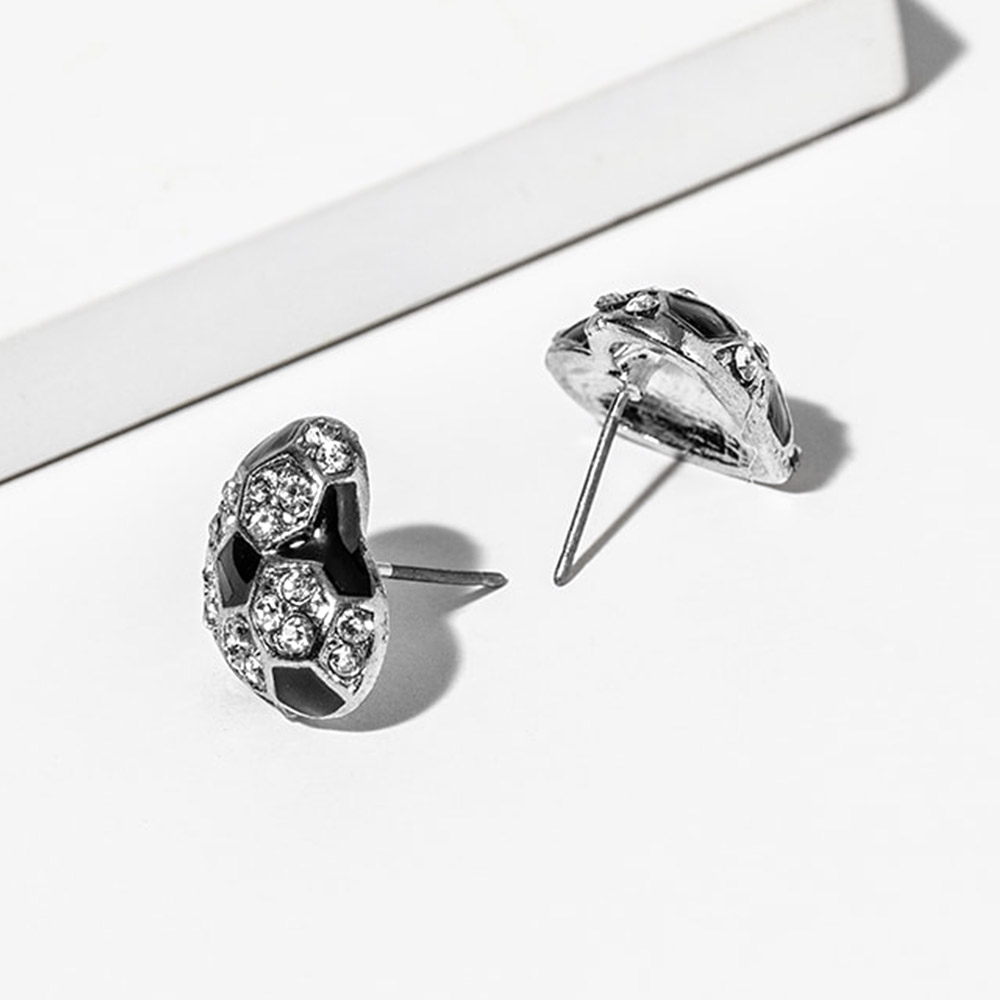 Details • Size : 0.7" X 0.8" • Post Back • These crystal sport ball theme stud earrings feature a brilliant pave design that sparkles with every movement. Their chic, modern silhouette adds a touch of luxury to any outfit, making them the perfect choice for both daily wear and special occasions that call for effortless sophistication. • Lead and Nickel Compliant