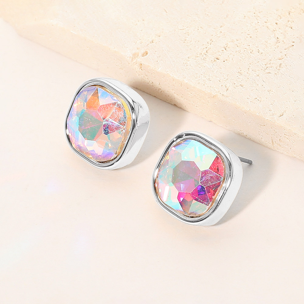 Details • Size : 0.5" X 0.5" • Post Back • These square-cut crystal stud earrings bring a refined, polished sparkle that enhances any look. Designed for lightweight comfort and timeless appeal, they offer a versatile accent suitable for both everyday wear and special occasions. • Lead and Nickel Compliant