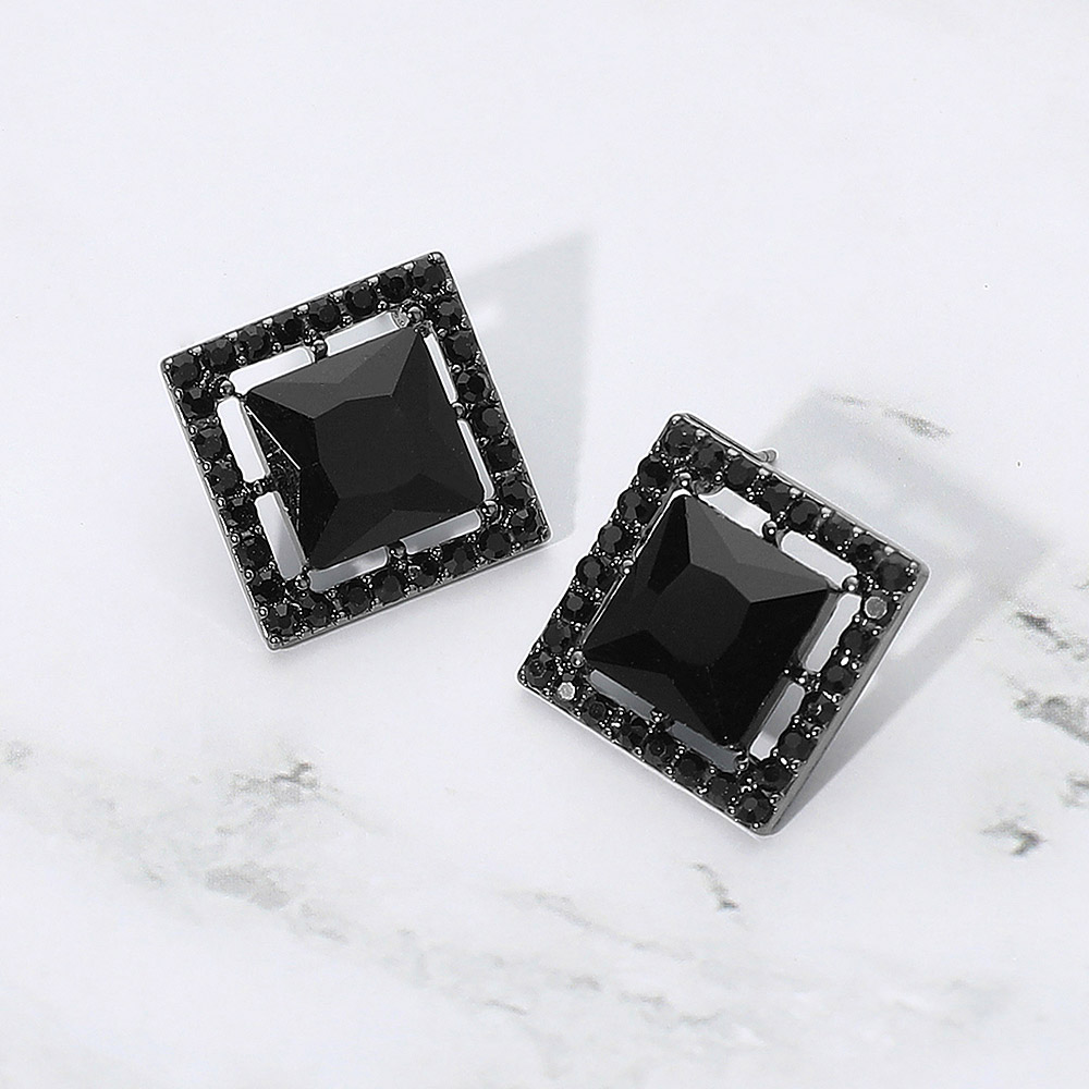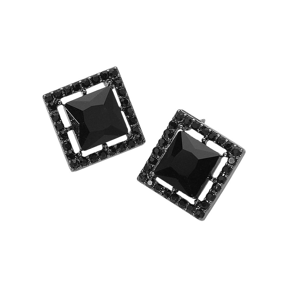 Details • Size : 1" X 1" • Post Back • Elegant square-cut gemstone stud earrings featuring a framed design with sparkling accent stones. A chic and modern accessory that adds refined shine to both everyday outfits and special occasions. • Lead and Nickel Compliant