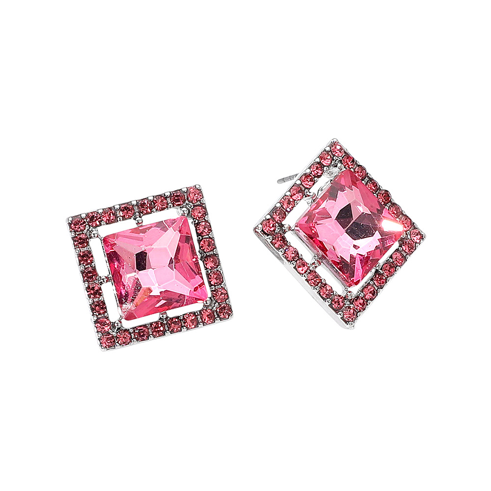 Square Cut Gemstone Framed Evening Stud Earrings Square Cut Gemstone Framed Evening Stud Earrings