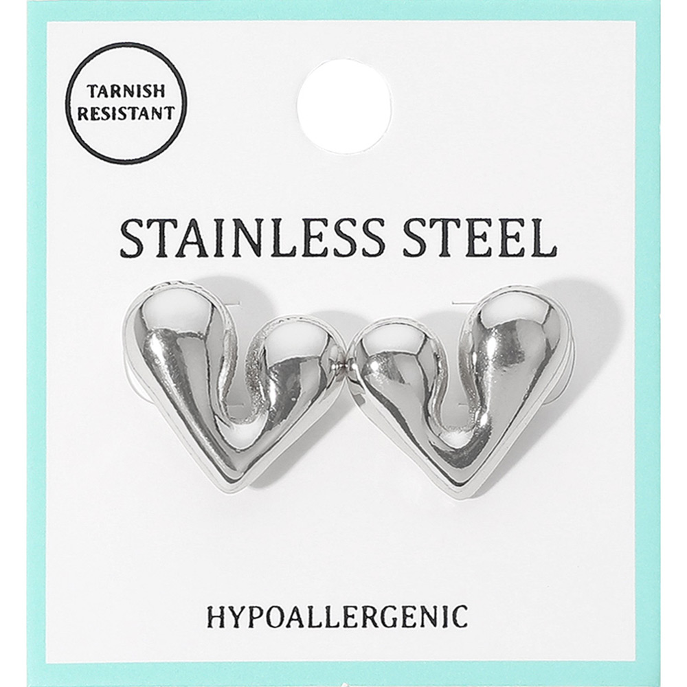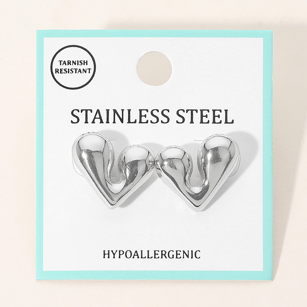 • Chic stainless steel heart stud earrings featuring a smooth sculpted shape with a modern, bold look. Tarnish resistant and hypoallergenic, designed for everyday wear with secure posts and a stylish statement silhouette suited for any jewelry collection.