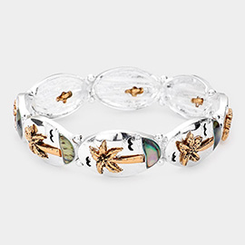 2PCS - Antique Metal Palm Tree Abalone Flamingo Pendant Necklace