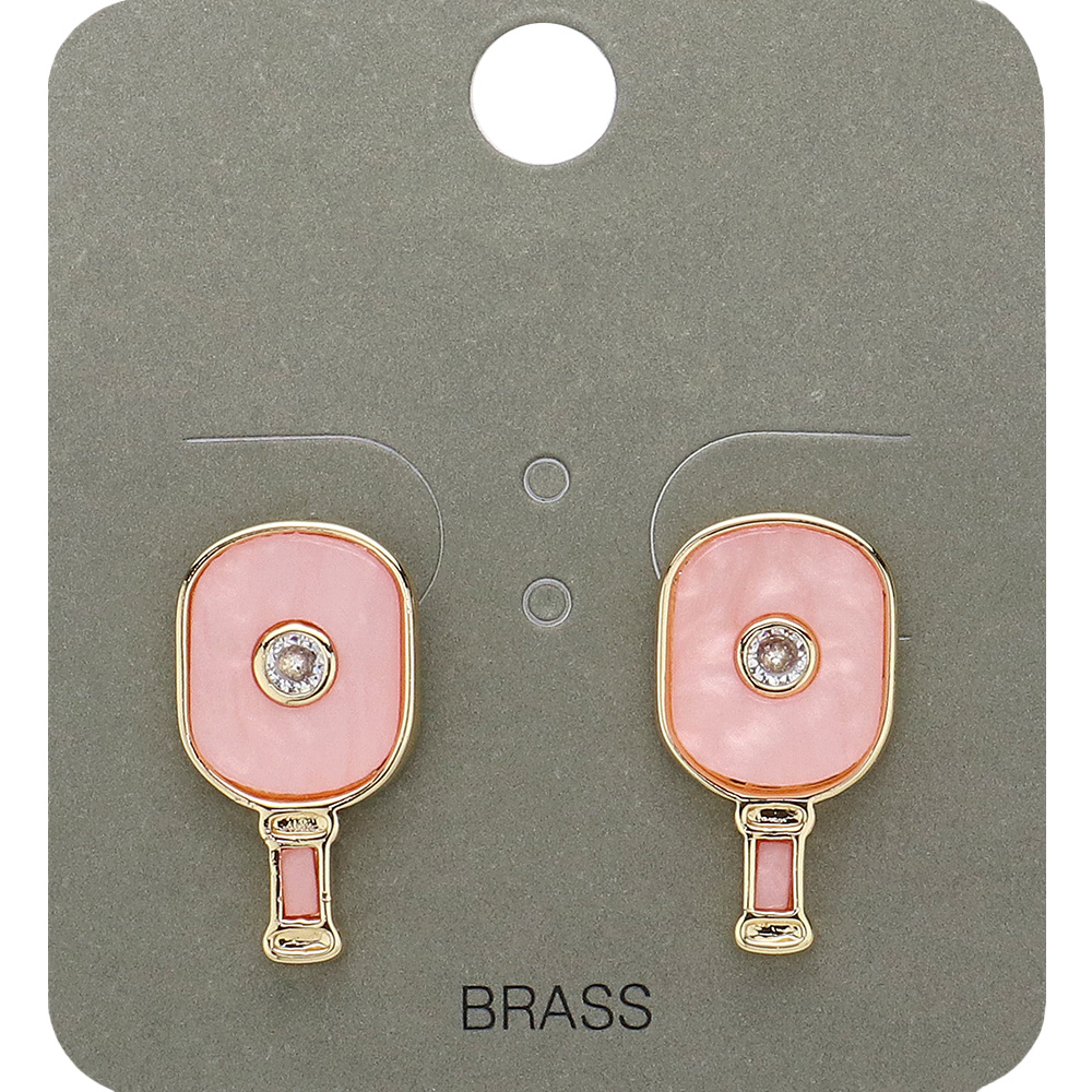 Stone Pointed Enamel Pickleball Paddle Stud Earrings