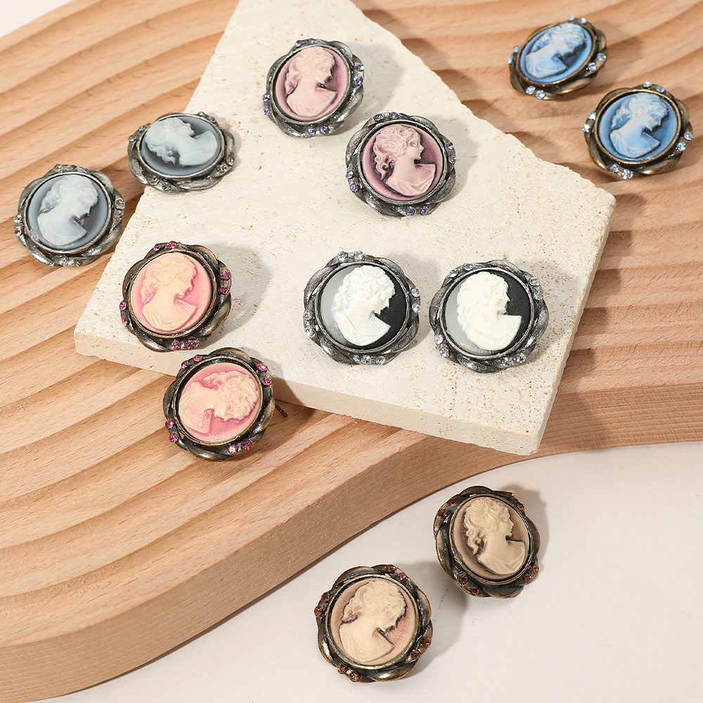 Crystal Accent Vintage Cameo Drop Dangle Earrings