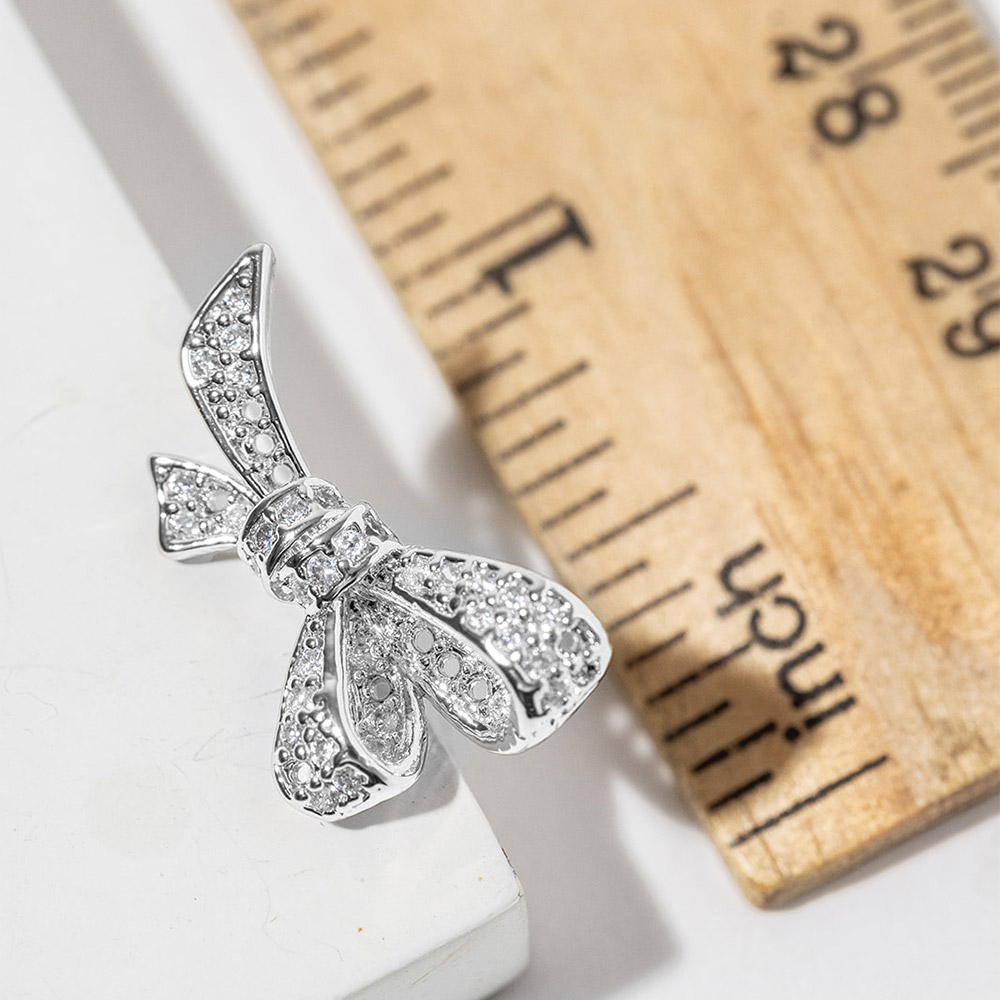• Elegant bow-shaped stud earrings designed with delicate pavĂ© sparkle for a refined, feminine finish. This timeless silhouette adds charm to everyday outfits, special occasions, and gift collections, offering a polished accent that pairs effortlessly with both casual and dressy jewelry styling.