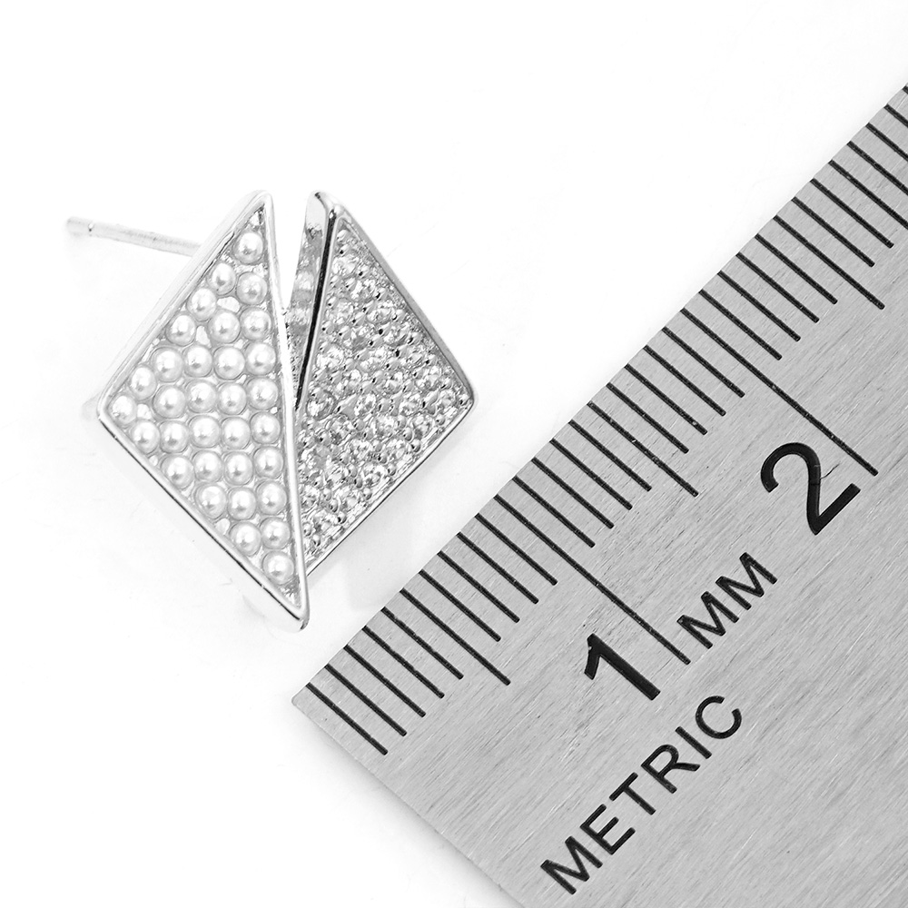 White Gold Dipped CZ Pearl Embellished Geometric Stud Earrings