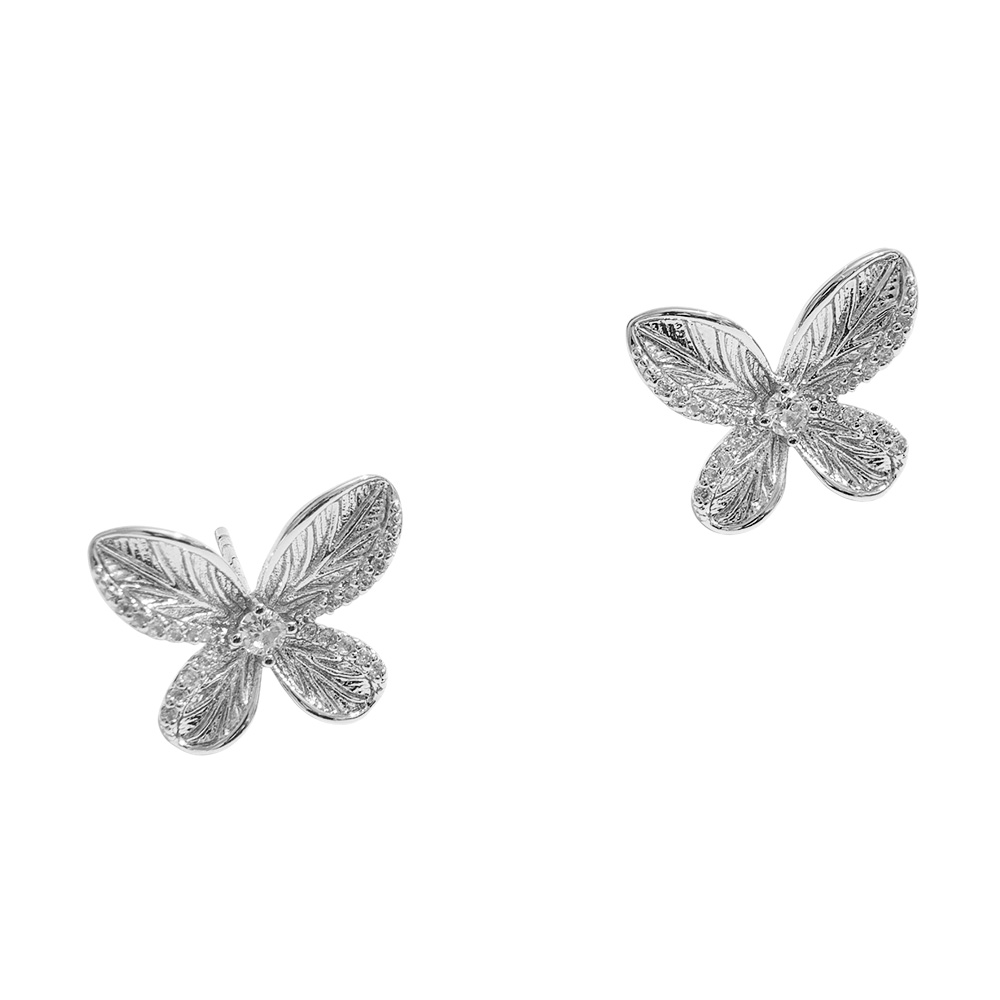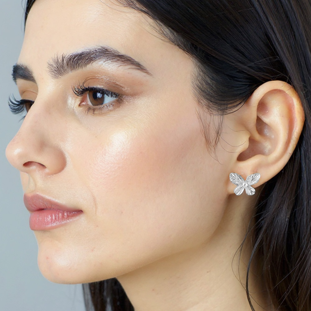 Details • Size : 0.7" X 0.75" • Post Back • Delicate butterfly crystal stud earrings designed with sparkling accents and detailed wings for a feminine touch. Perfect for everyday wear or gifting, these earrings bring charm, elegance, and a hint of sparkle to any outfit, making them a versatile jewelry box essential. • Brass • CZ Cubic Zirconia • Gold Dipped • Hypoallergenic • Lead and Nickel Compliant • Made In Korea