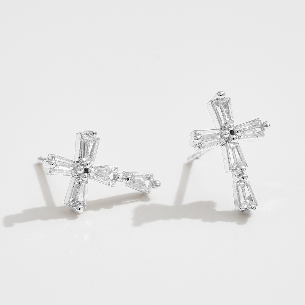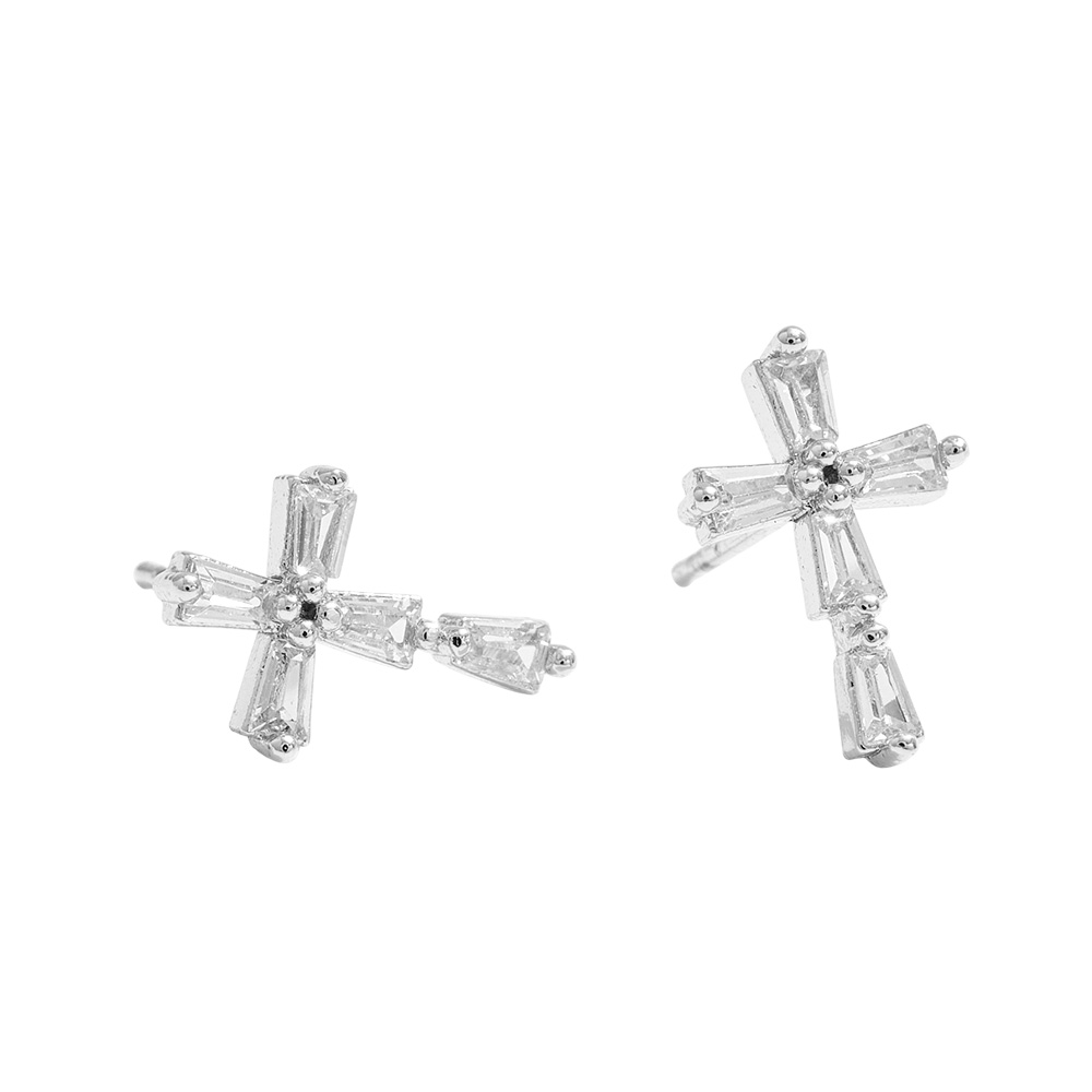 Details • Size : 0.4" X 0.5" • Post Back • These baguette cut cross stud earrings feature sparkling rhinestone accents for a refined, radiant look. Perfect for everyday elegance or special occasions, they combine timeless symbolism with a modern touch, making them a versatile addition to any jewelry collection. • Brass • CZ Cubic Zirconia • Gold Dipped • Lead and Nickel Compliant • Made In Korea