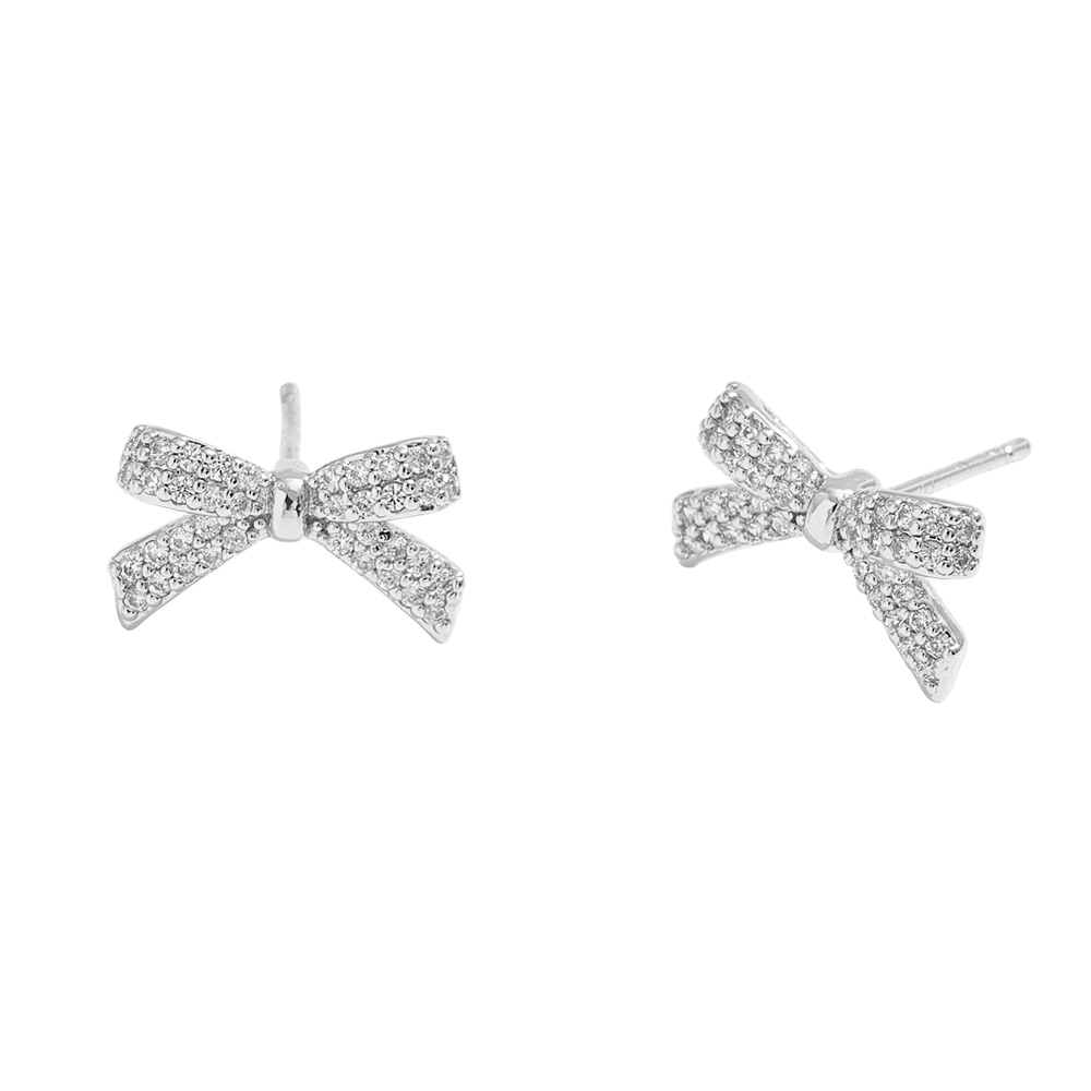 14K Gold Dipped CZ Stone Paved Mini Bow Stud Earrings