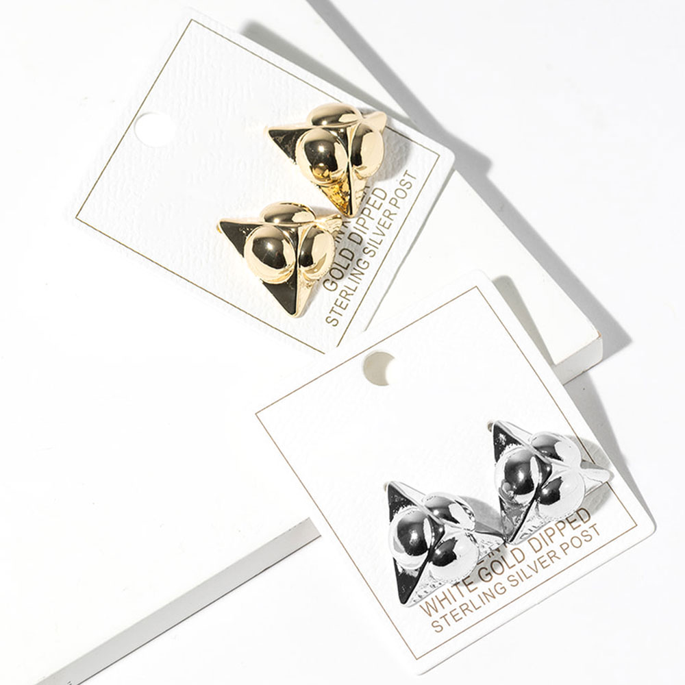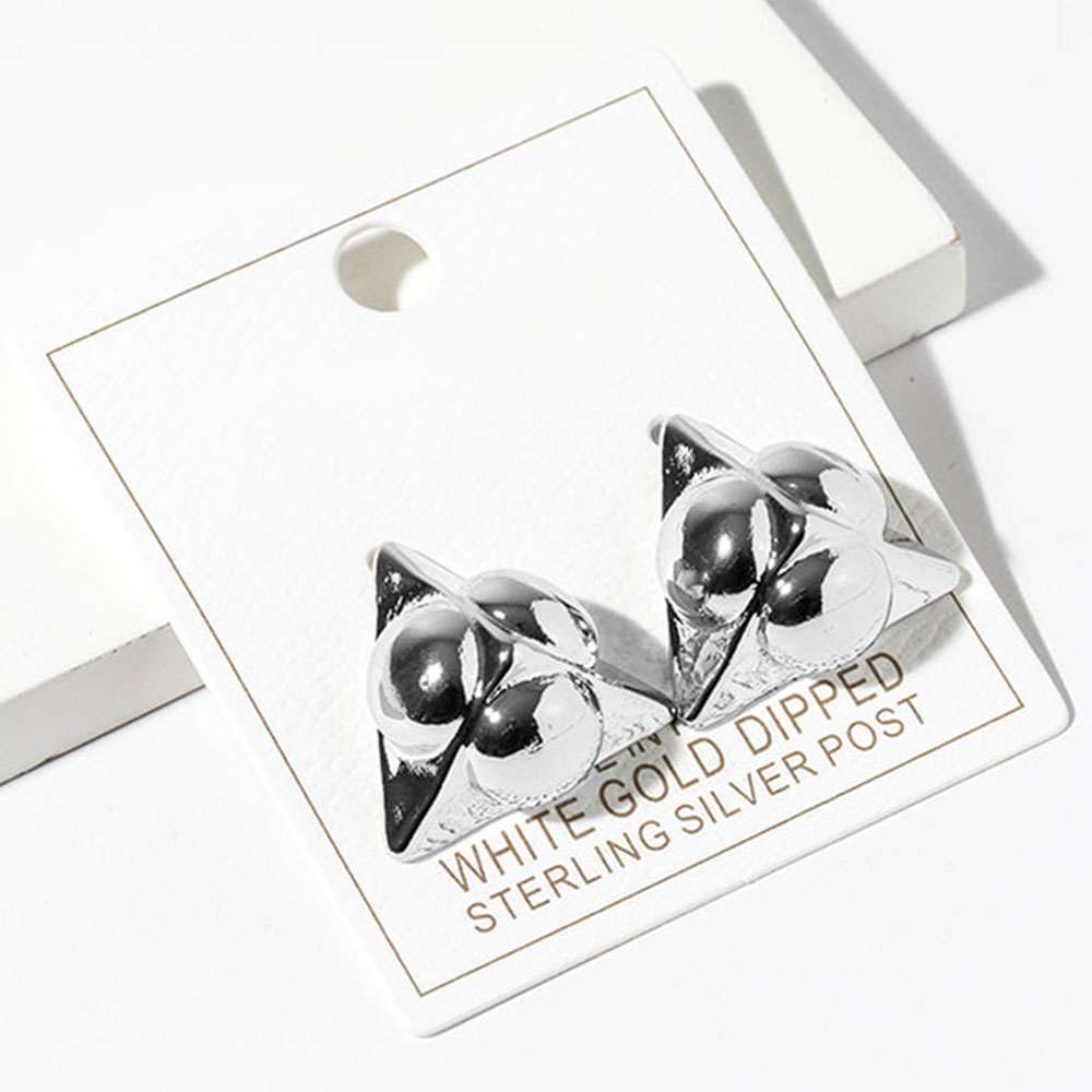 Details • Size : 1" X 0.8" • Modern geometric stud earrings featuring a sculpted knot-inspired design with smooth, dimensional curves. These statement studs add a bold yet refined accent to everyday looks, making them easy to style for casual wear, work outfits, or elevated fashion collections seeking a clean, contemporary edge. • Gold Dipped • Lead and Nickel Compliant • Made In Korea • Sterling Silver Post
