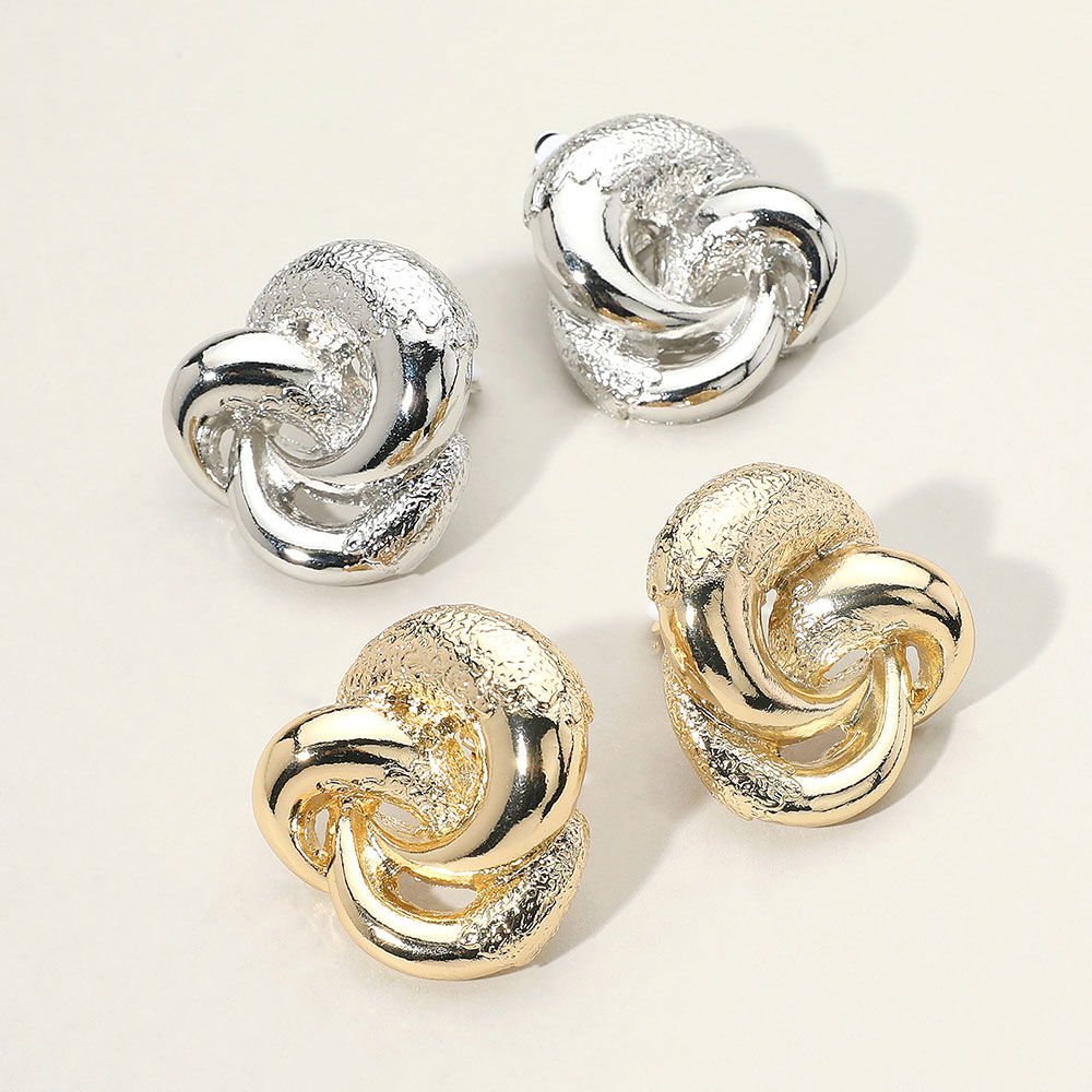 Details • Size : 1.5" X 1.5" • Clip On • Enhance your style effortlessly with these twisted knot clip-on stud earrings, designed for comfort and sophistication. Their sleek, sculptural shape adds a chic touch to casual or formal looks, offering a timeless accessory that complements every wardrobe with refined, minimalist charm. • Lead and Nickel Compliant