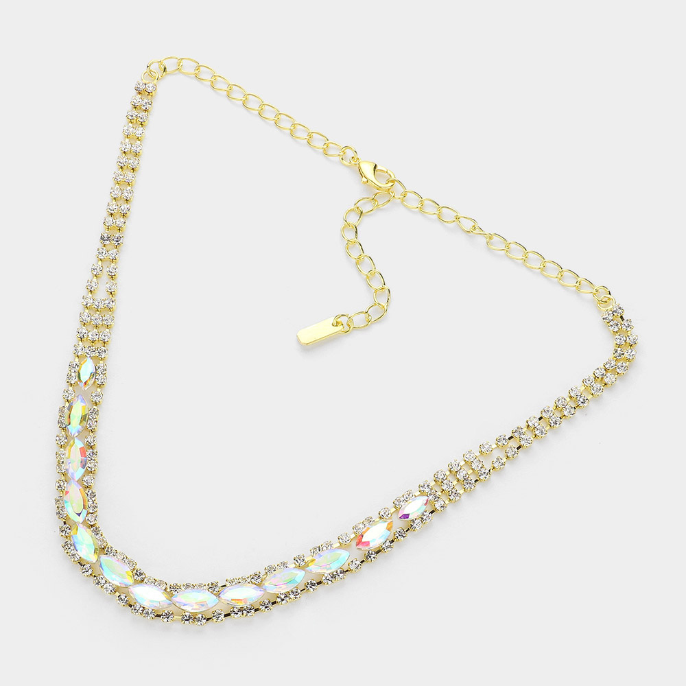 Marquise Stone Accented Rhinestone Paved Evening Choker Necklace