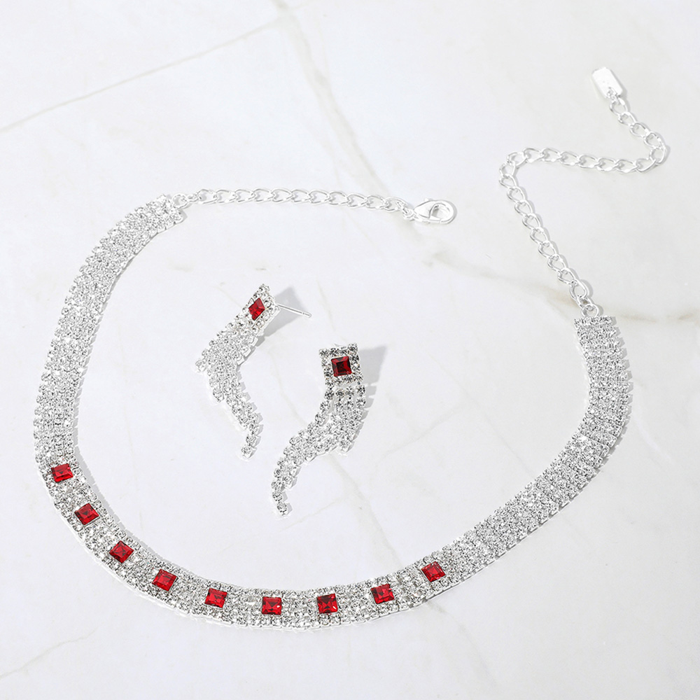 • Turn heads with this rhinestone choker and earring set featuring shimmering strands and square accent stones. Designed for elegant evenings, parties, or special occasions, this coordinated set delivers striking sparkle and a refined touch to any glamorous ensemble.