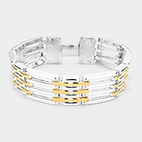 14K Gold Plated CZ Emerald Cut Stone Cluster Link Evening Toggle Bracelet