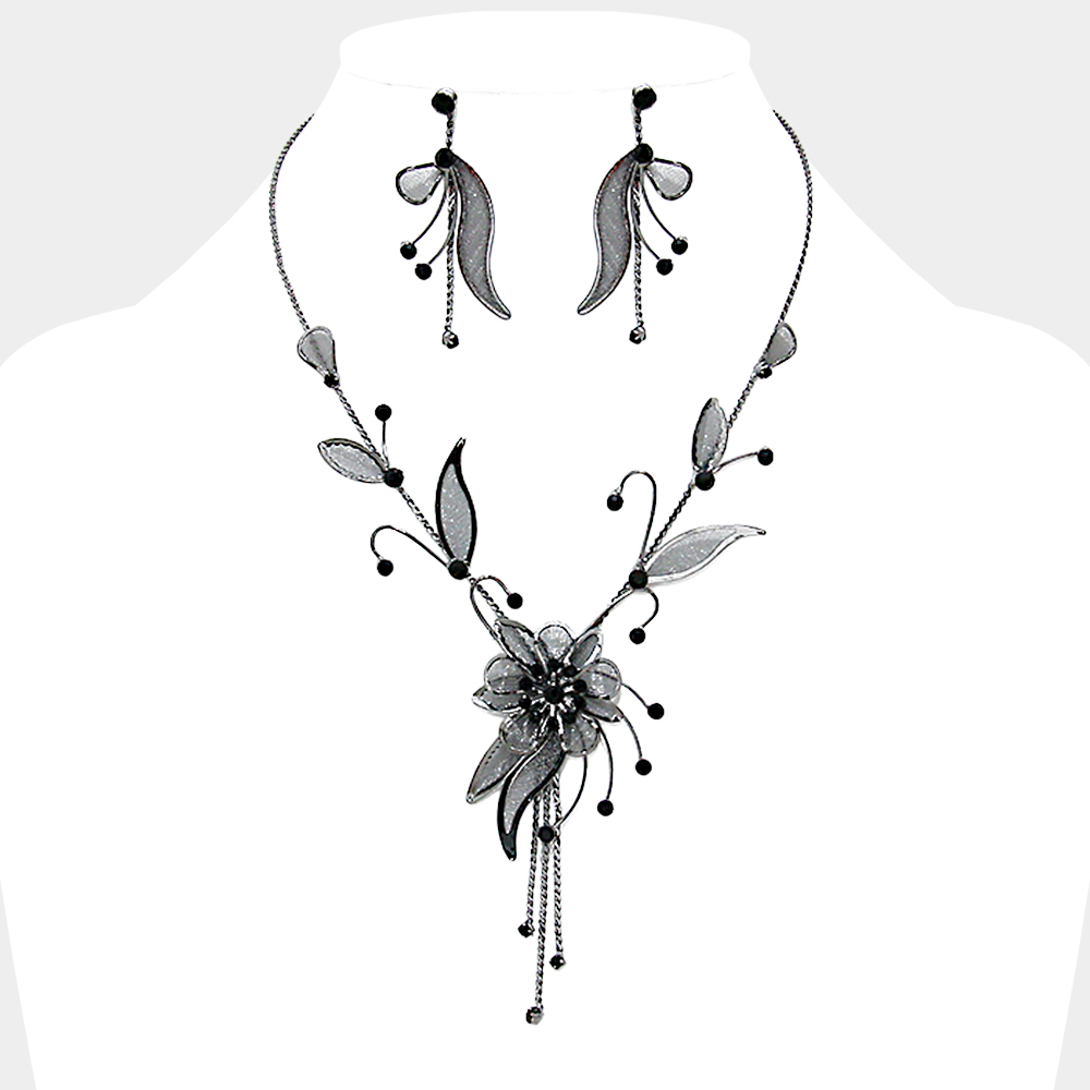 Felt Back Stone Embellished Seed Beaded Tropical Leaf Dangle Earrings