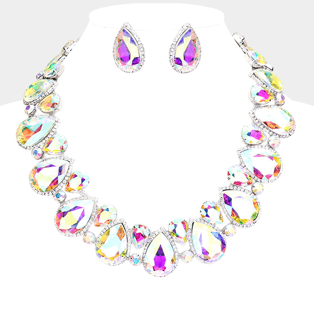 Crystal Rhinestone Trim Teardrop Collar Evening Necklace