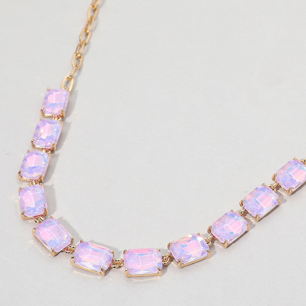 • This elegant gemstone chain necklace features a row of precisely cut stones linked with a sleek chain for a refined, modern look. Its adjustable closure ensures a comfortable fit, making it a sophisticated accessory for formal occasions, evening wear, or adding a statement touch to everyday style.