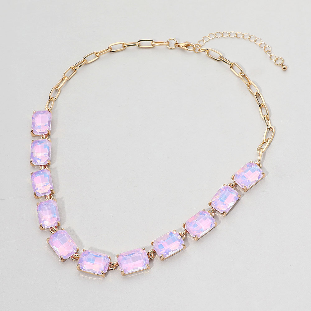 Cushion Rectangular Stone Cluster Link Evening Necklace