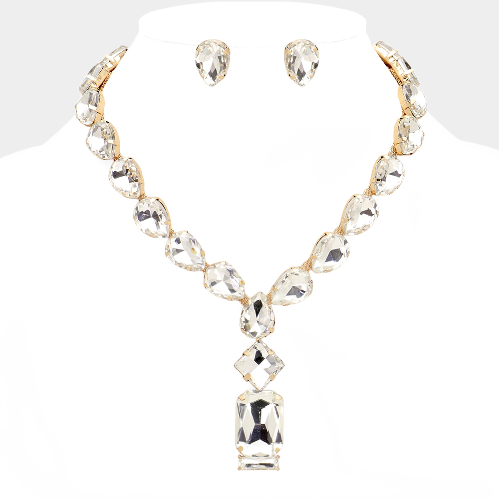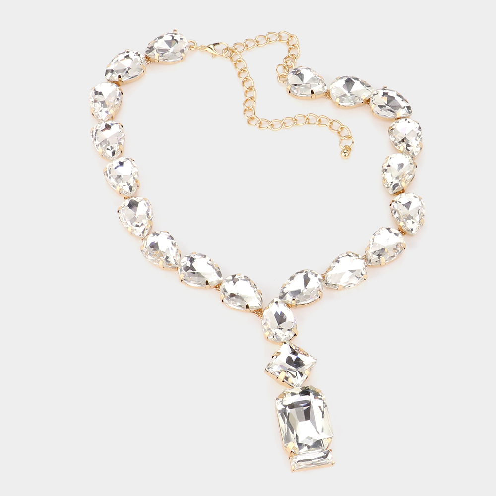 Emerald Cut Stone Cluster Pendant Pointed Teardrop Stone Cluster Link Evening Necklace