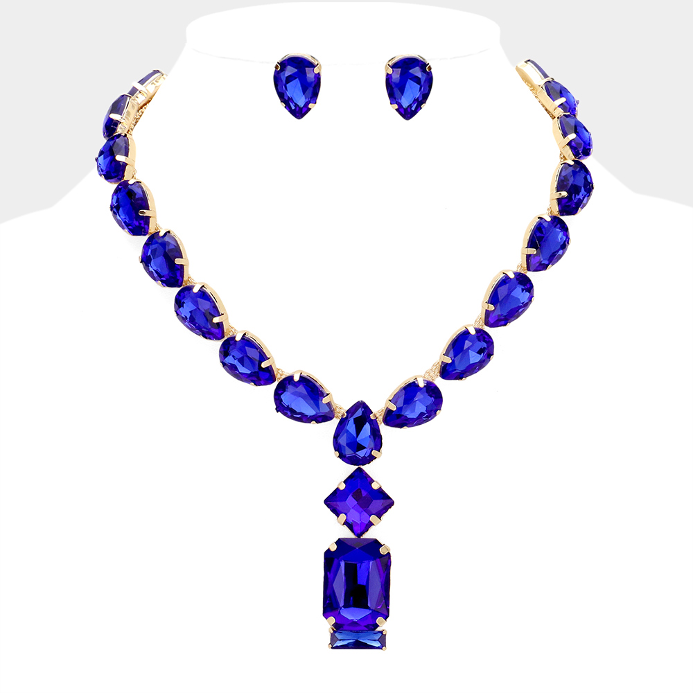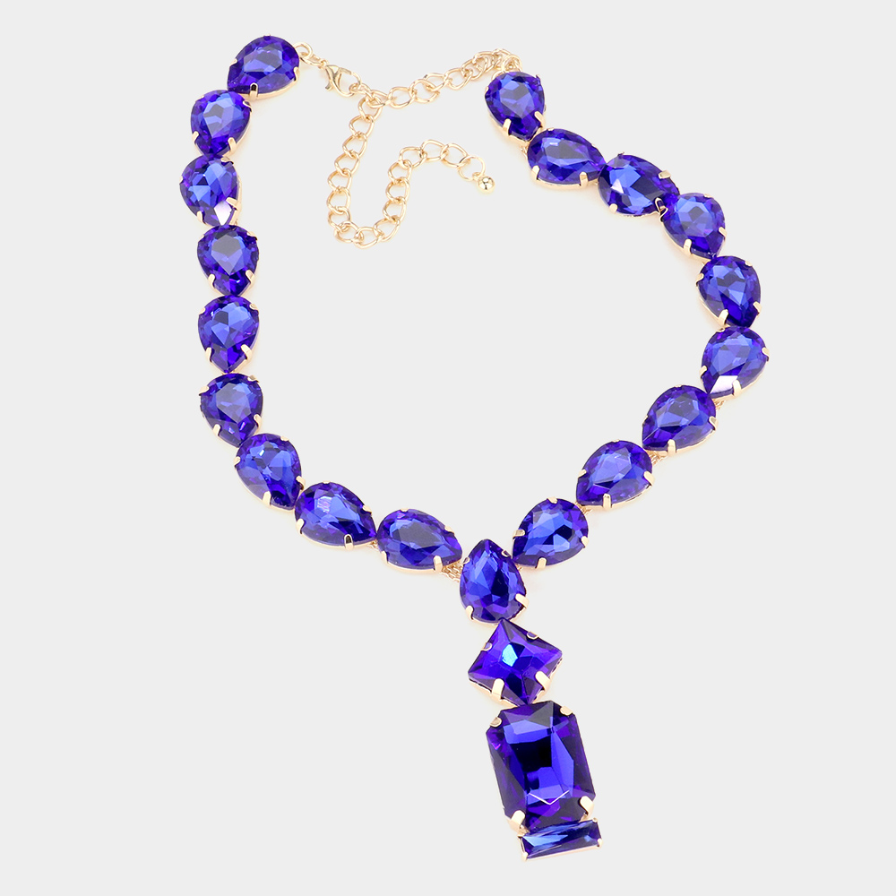 Round Teardrop Stone V Shaped Rhinestone Necklace