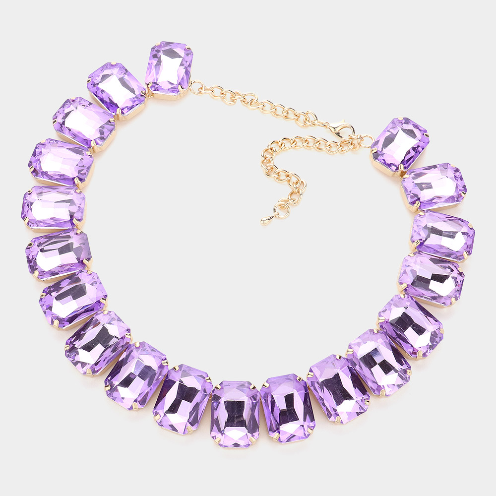 Emerald Cut Stone Collar Evening Necklace Emerald Cut Stone Collar Evening Necklace