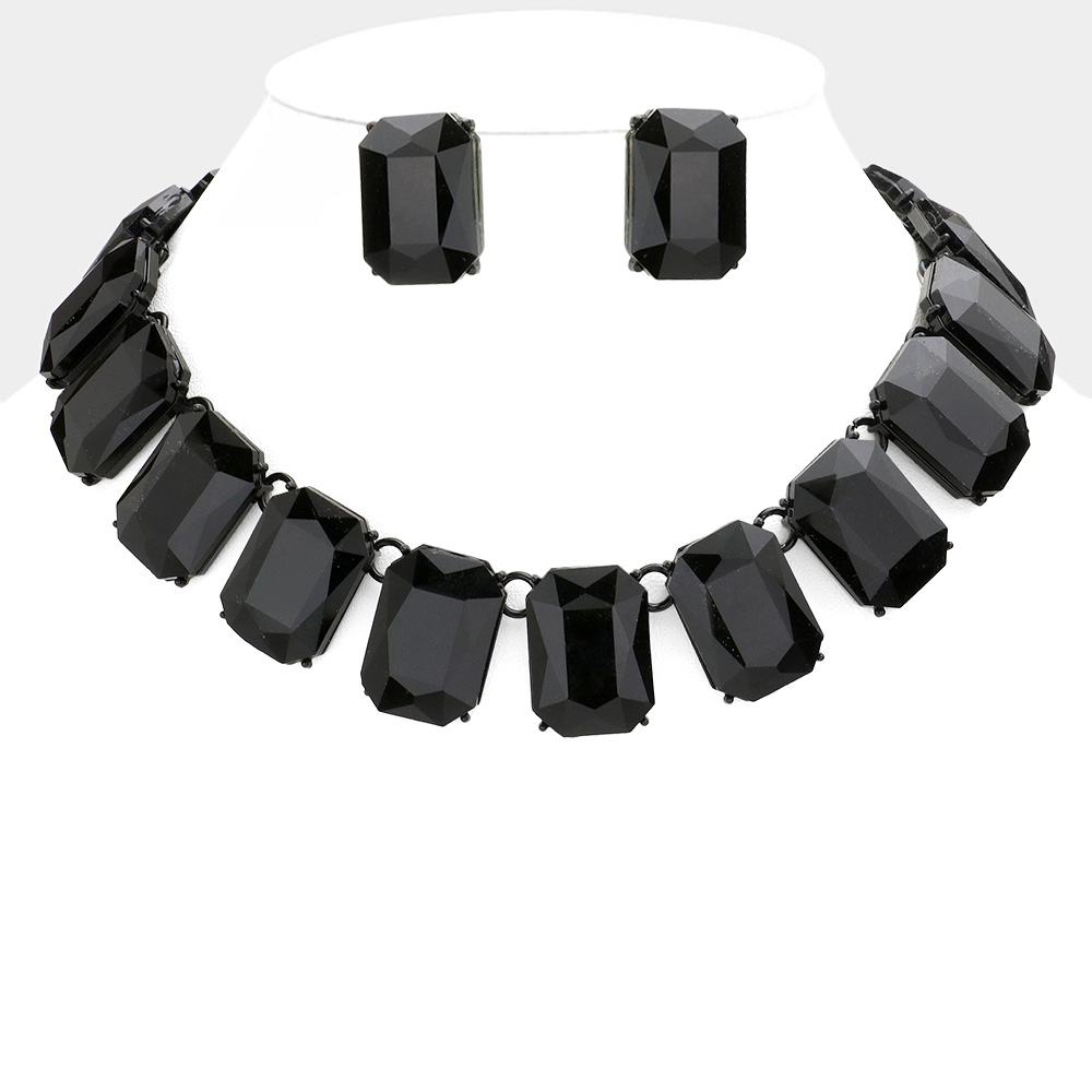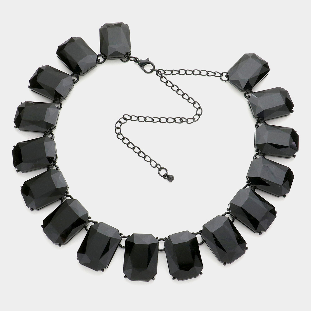 Emerald Cut Stone Link Evening Necklace