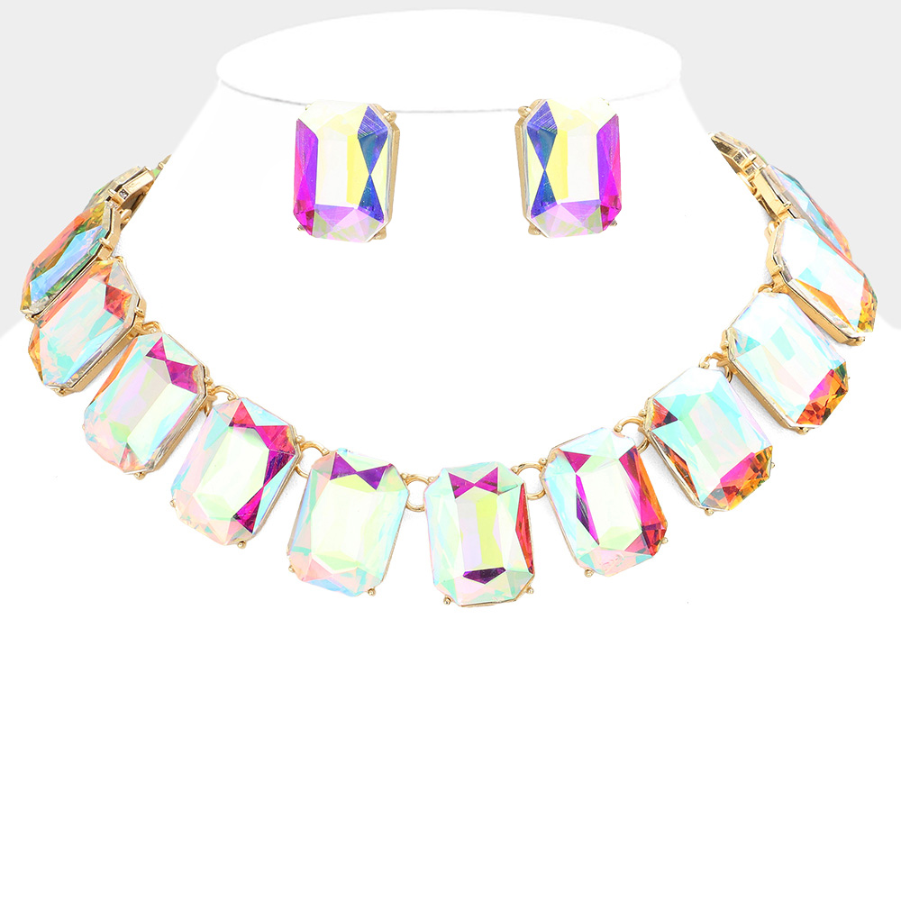 Emerald Cut Stone Link Evening Necklace