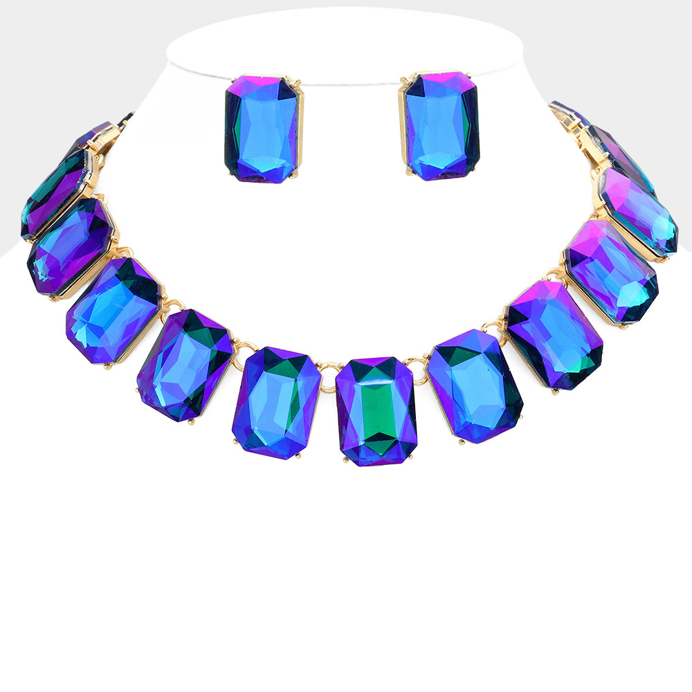 Emerald Cut Stone Link Evening Necklace