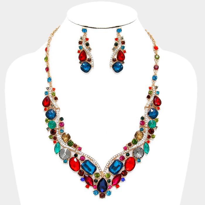Teardrop Crystal Statement Open Circle Evening Earrings