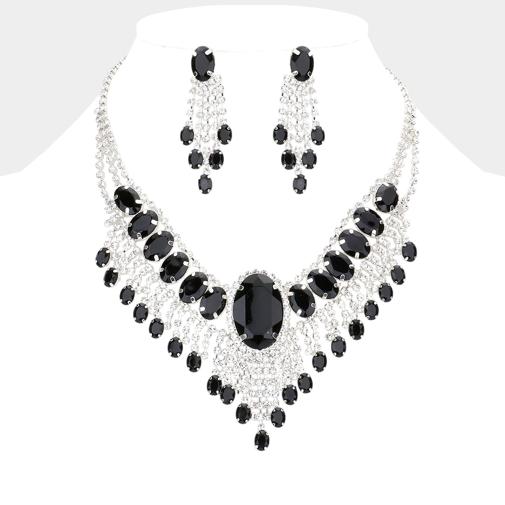 Oval Glass Stone Pointed Rhinestone Paved Dangle Evening Earrings