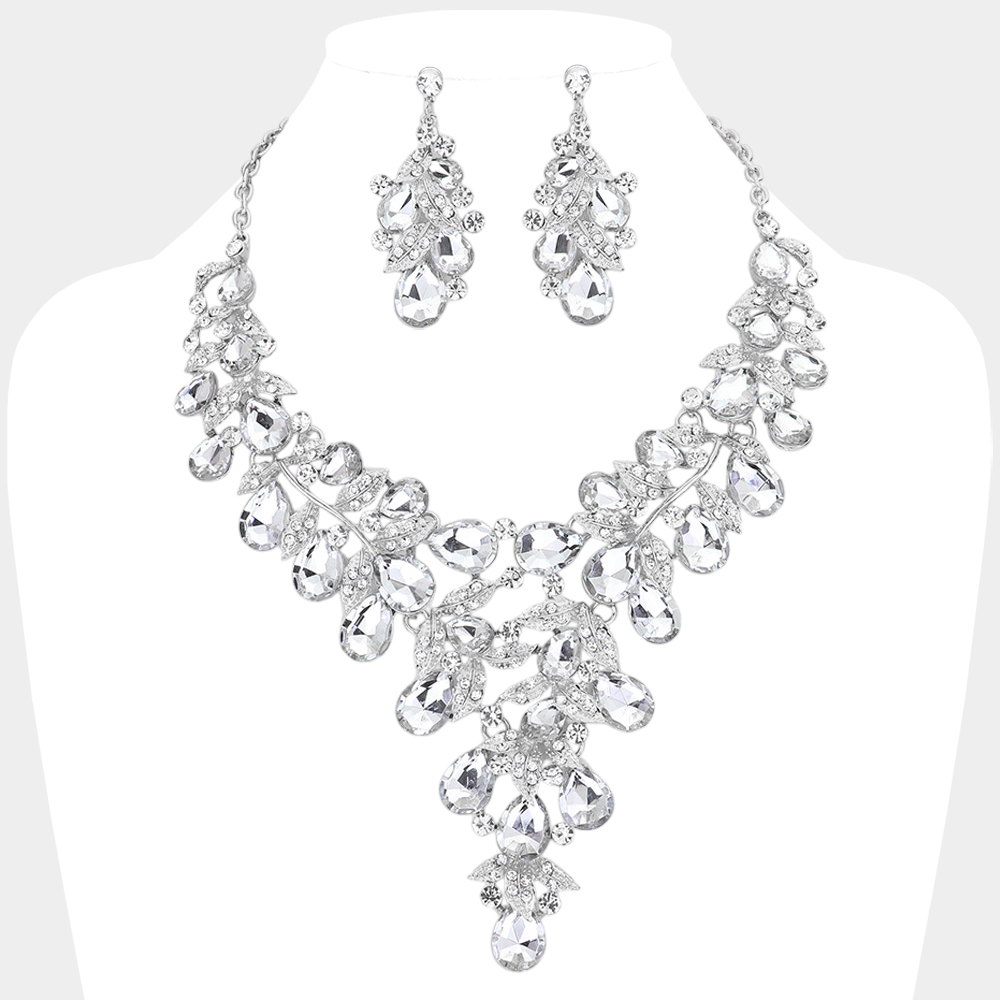 Leaf Teardrop Stone Cluster Statement Evening Necklace